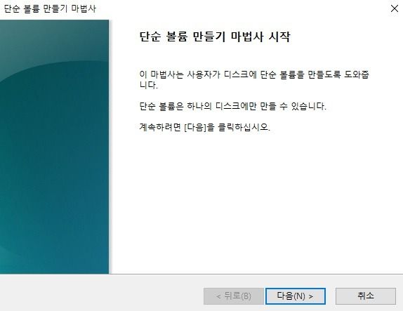 그러면 단순 볼륨 만들기 마법사가 나타납니다. 다음버튼을 클릭합니다.