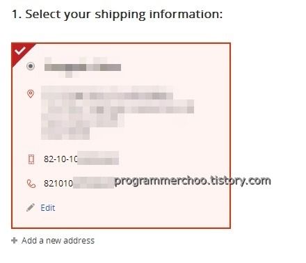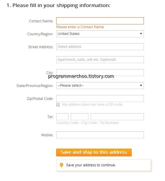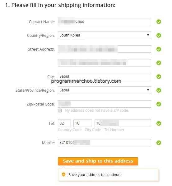 모두 입력하셨으면 Save and ship to this address 버튼을 누릅니다.