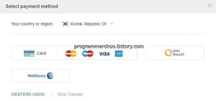 Contact Name은 영어 이름, Country/Region은 South Korea